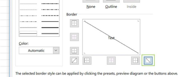 5.然后在菜单右下方选择对角线选项。通过单击菜单左下角的另一个对角线图标,您可以选择以相反的方向绘制线条。