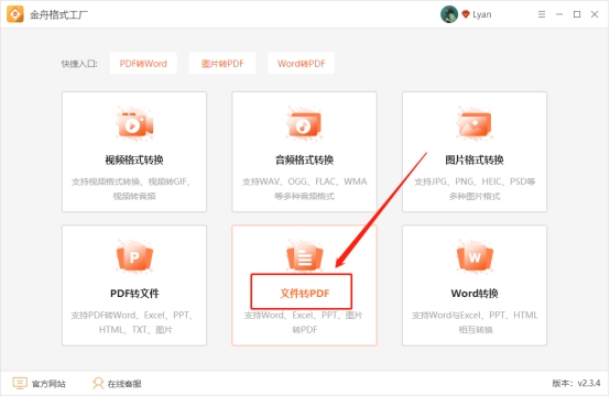 第一步、首先,在电脑桌面打开软件并且选择“文件转PDF”选项;