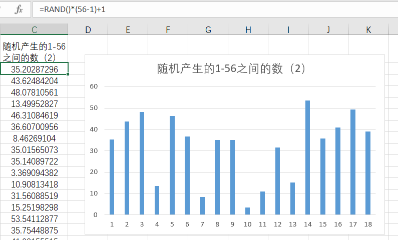 RAND 返回了一个大于等于 0 且小于 1 平均分布的随机数。 每次计算工作表时都会返回一个新的随机数。
