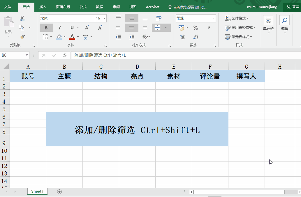 我们需要对数据进行筛选的时候,可以开启表格筛选模式,可以选择原来的操作方法:选中单元格-数据-筛选,还有就是可以使用快捷键【Ctrl+Shift+L】快速添加和删除筛选模式。