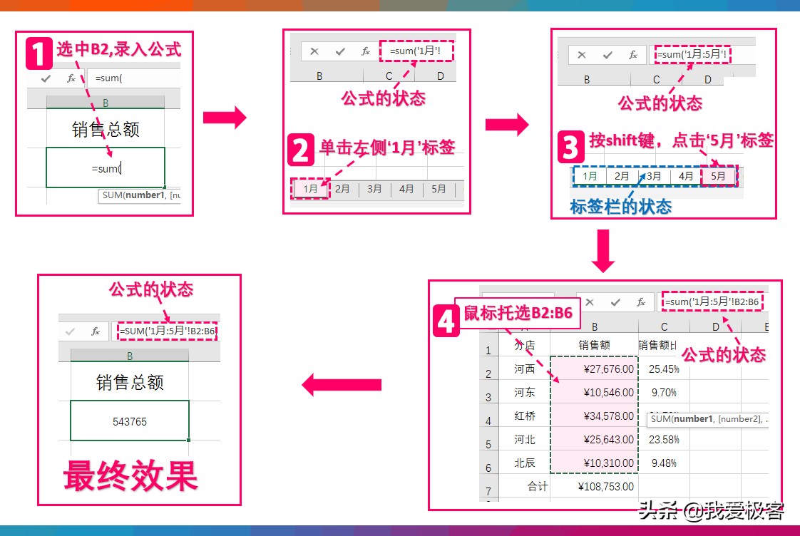 1.不影响计算结果的操作:案例公式=sum(‘1月:5月’!B2:B6)