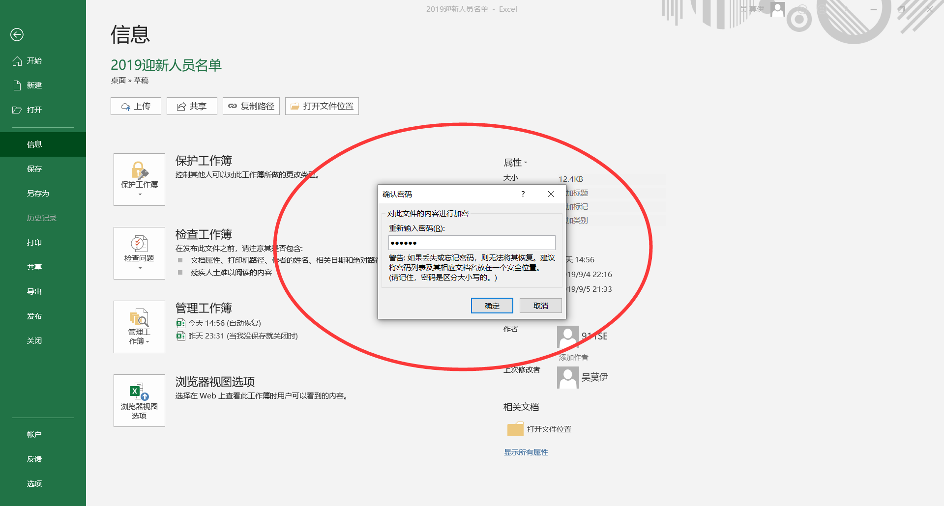 方法三、工作簿加密,保护整个文件。