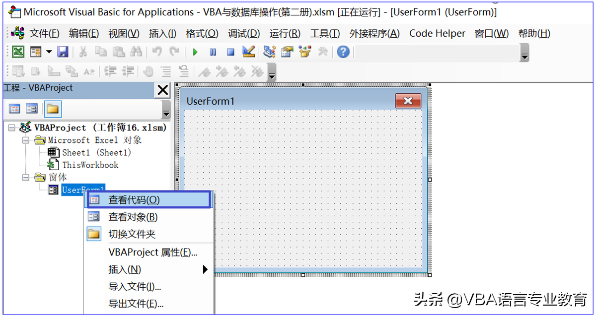 《VBA之Excel应用》是非常经典的,是我推出的第七套教程,定位于初级。这套教程从简单的录制宏开始讲解,一直到窗体的搭建,内容丰富,实例众多。大家可以非常容易的掌握相关的知识,这套教程共三册,十七章,都是我们在利用EXCEL工作过程中需要掌握的知识点,希望大家能掌握利用。今日讲解的内容是“VBA之EXCEL应用”的第十六章“用户窗体(Userform)对象”的第1节:VBA中如何利用用户窗体