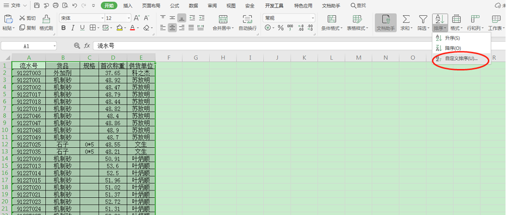 在开始菜单栏选择“排序”中的“自定义排序”,如下: