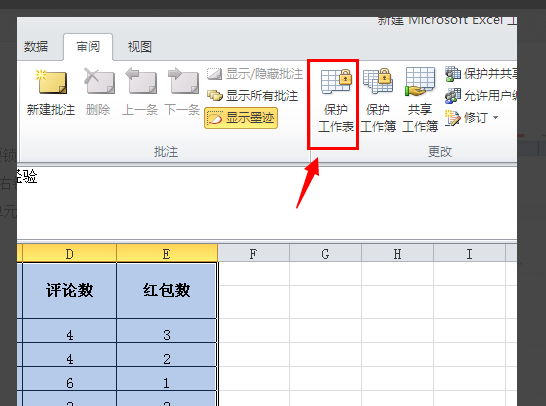 5,在审阅菜单下的工具栏中,找到并点击“保护工作表”工具。(如下图)