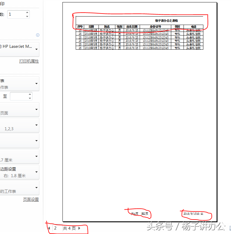 今天还是讲一个“页面设置”的小功能。同样是很多页数,打印的时候如果没有设置的话,打印出来第二页之后就没有标题了,一列一列的如果不看前面根本不知道是什么数据。