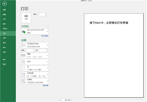 打印也有快捷键,只需要按下【Ctrl+P】,就会立即弹出打印界面,不用再一个个按鼠标。1s操作,赢在起跑线。打印设置、打印预览统统都摆在你面前。