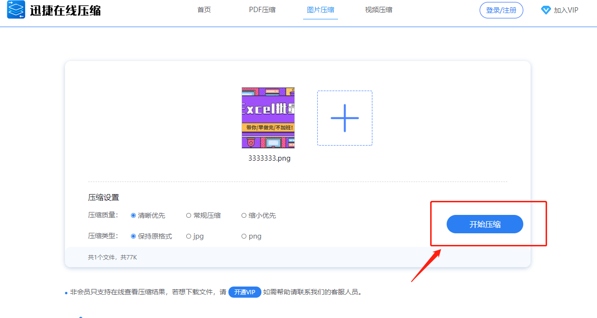 首先,如果是电脑端的Excel文件,我们可以选择迅捷在线压缩网站,帮助我们快速地对图片进行压缩,而且这个网站也可以对文档、视频等内容进行压缩,可以说是非常方便了。