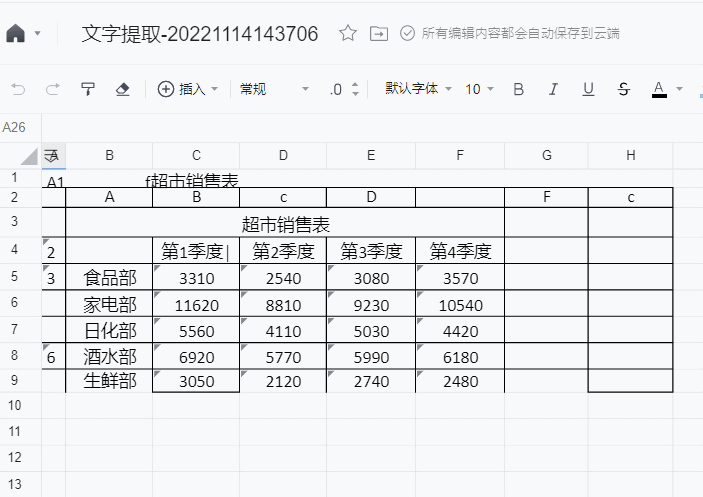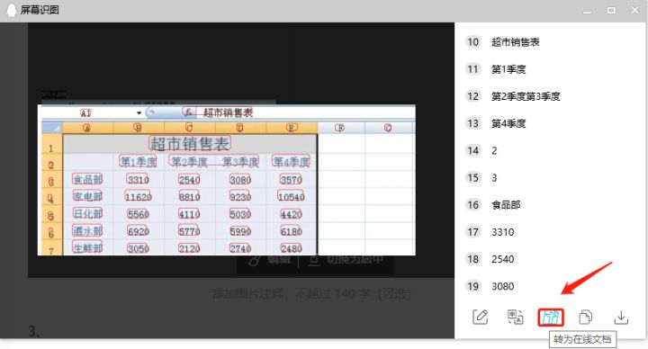 3、这样我们表格的内容就被识别出来了,然后点击转为在线文档