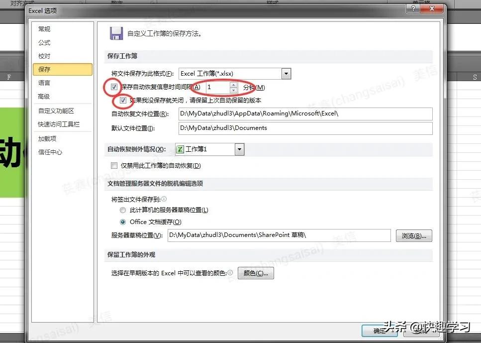 最后说一下如果遇到电脑死机、断电之后我们自动保存的文件在哪里找呢?大家看一下上图有个自动恢复文件位置,后面这个地址就是我们文件保存的位置,我们只需要在里面找到打开即可。