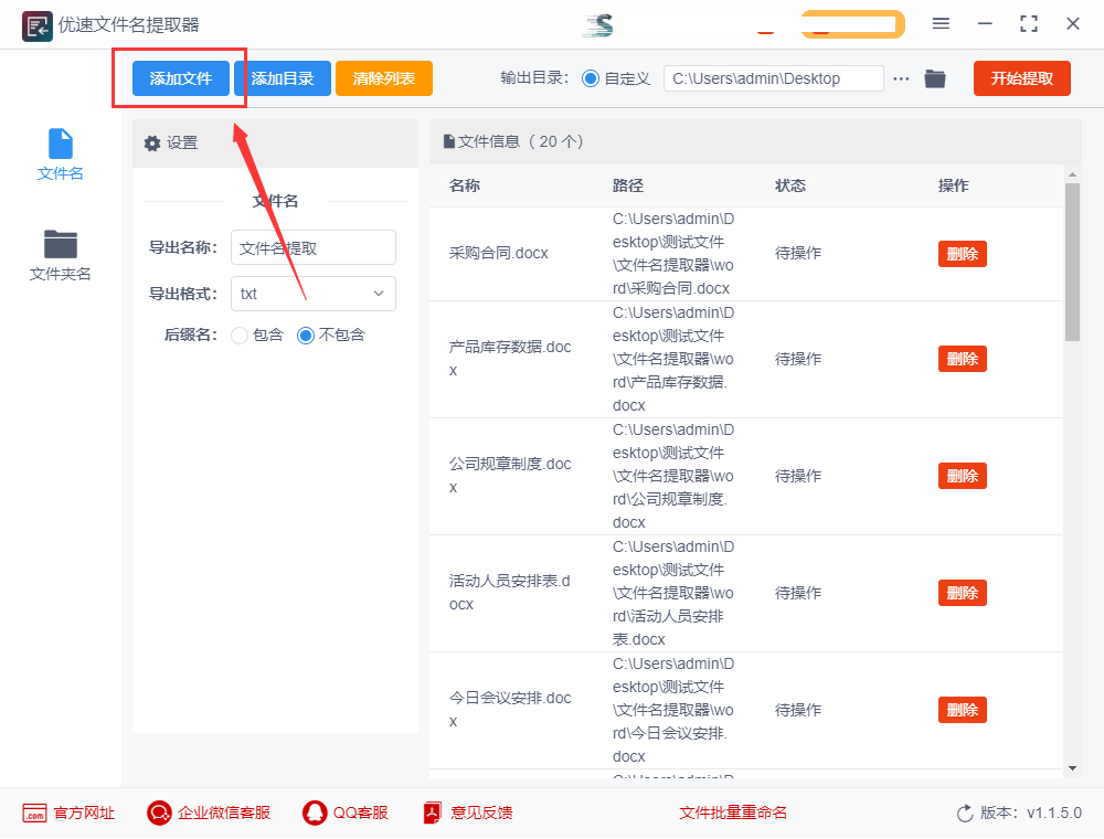 使用到的工具软件:优速文件名提取器