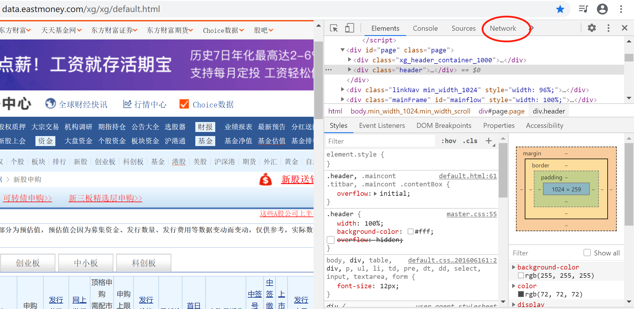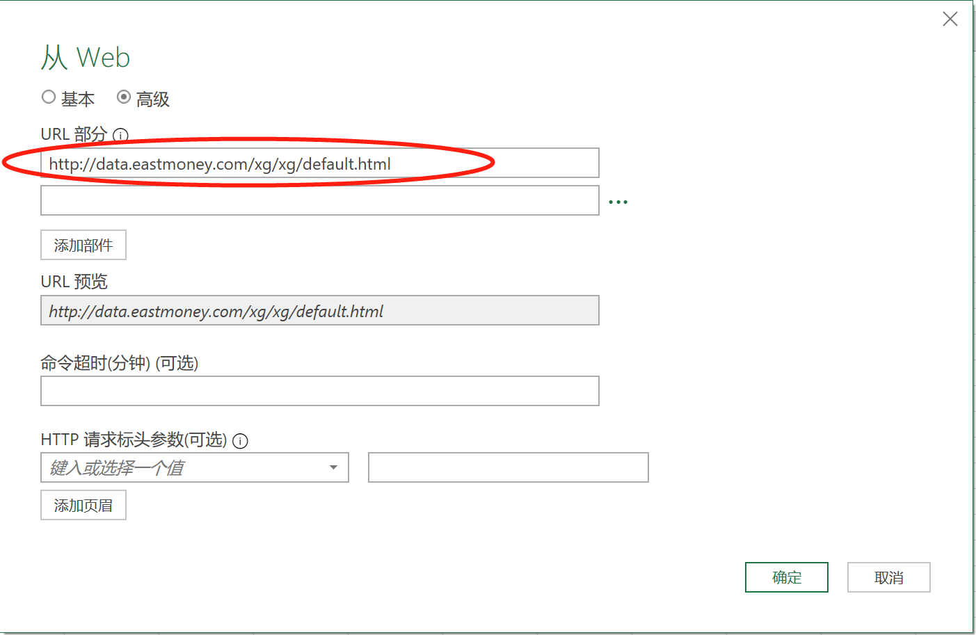 之后填入东方财富网新股申购页面的URL : http://data.eastmoney.com/xg/xg/default.html(如果想爬取其它网站,这里需填入该网站的URL,URL就是网址的意思)。