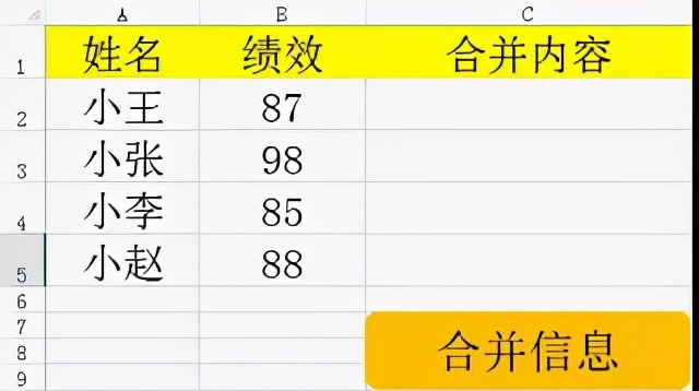 我们只需要在第一个单元格中填入相关的内容,然后按住“Ctrl+E”就能够完成其他内容的填写。”Ctrl+E”不仅仅单纯实现了两个单元格内容的拼接,我们可以按照自己喜欢的格式,输出相关的内容。例如,在单元格C2中,我们最终输出了“小王绩效为87”,不仅仅是A2单元格和B2单元格的拼接,我们插入了“绩效为”三个字来衔接A2单元格和B2单元格。所以在实际工作中,你可以按照自己的喜好,输出相关的内容。