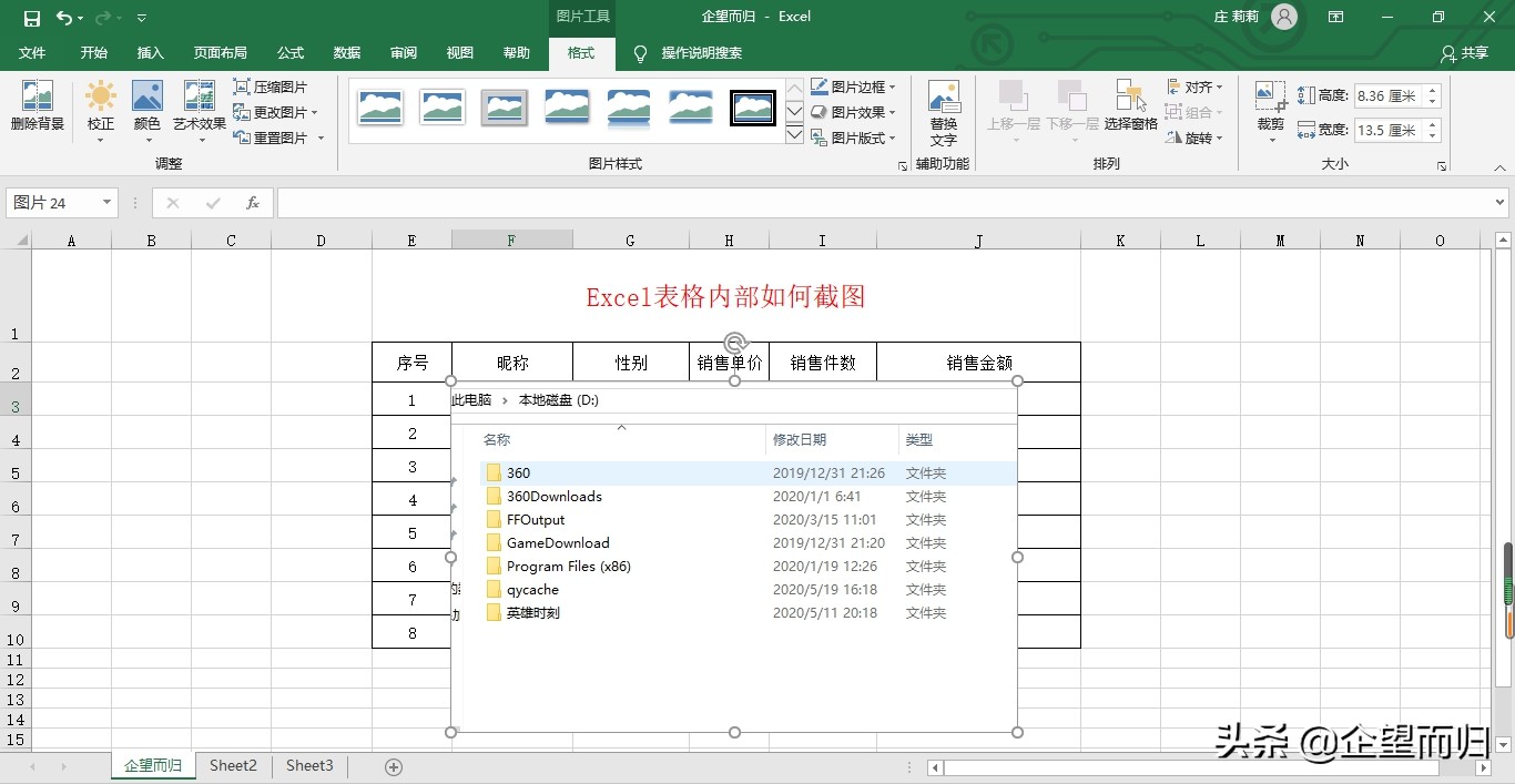做一张有图片的Excel表格,平常我们都是提前在电脑中准备好图片然后进行插入,今天我们来讲如何利用Excel表格内部进行快速截图。