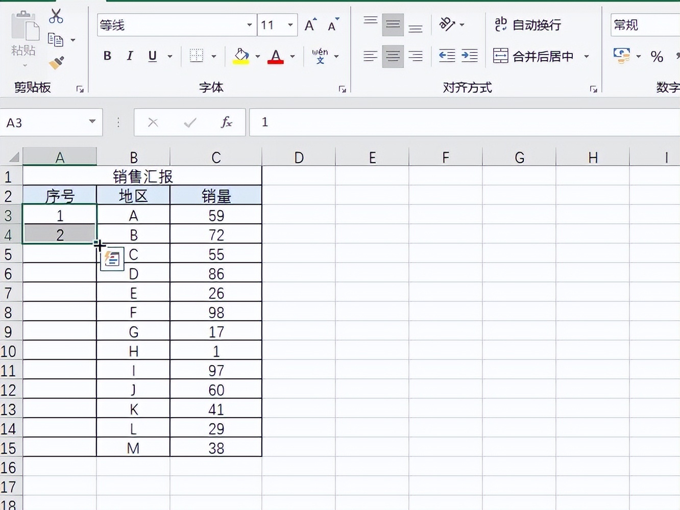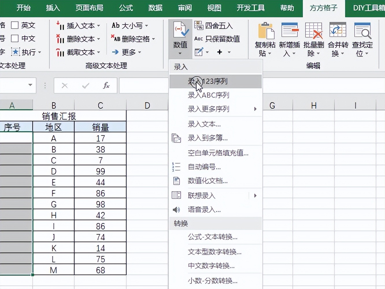 4.选择数值录入123序列的操作