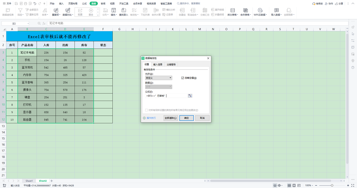 当我们在数据后面输入已审核后,数据就不能修改了,你知道怎么设置吗?小渔老师今天教大家一招快速设置,审核后的数据不能再修改,记得点赞加关注哦!