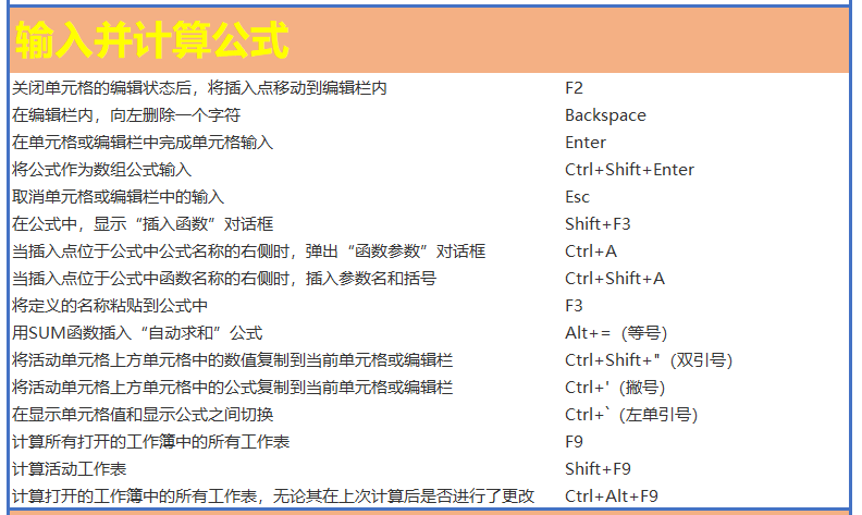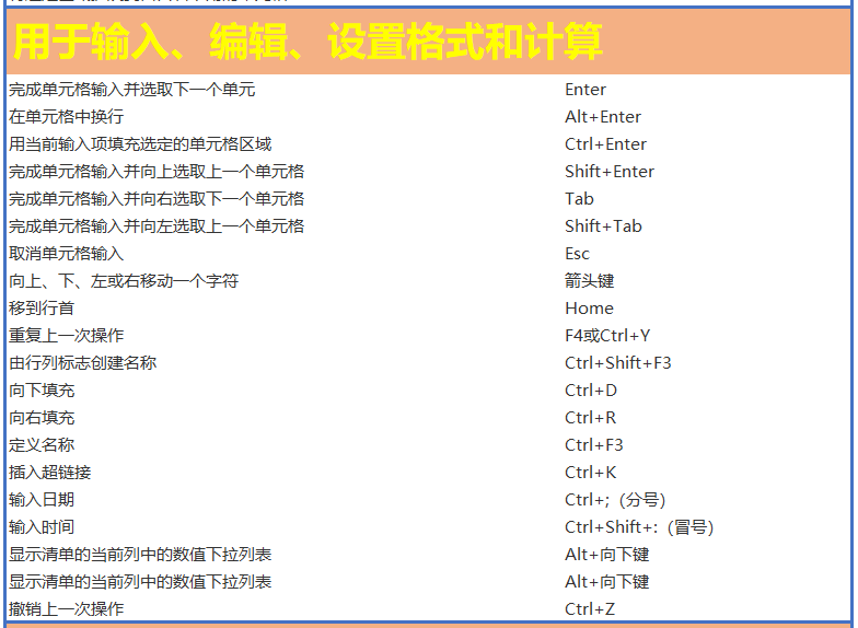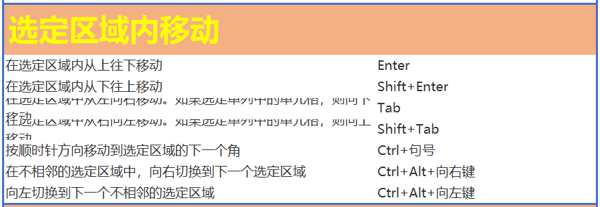 将选定区域扩展到当前行中的最后一个单元格 End+Shift+Enter
