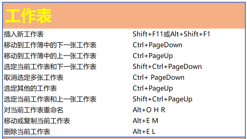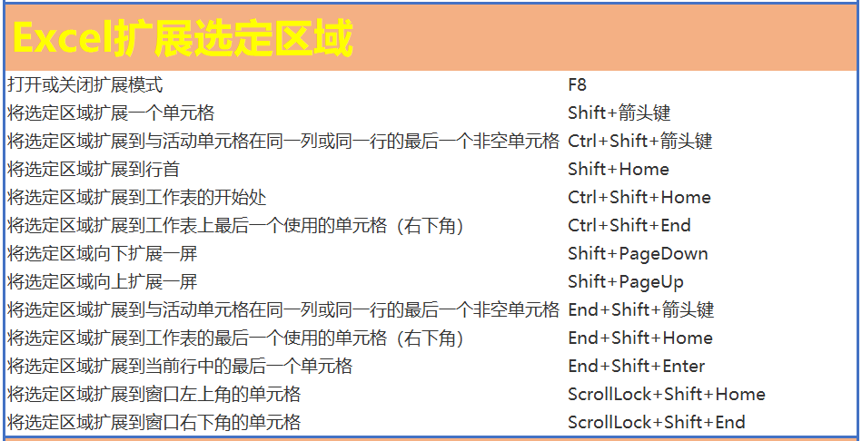 将选定区域扩展到工作表上最后一个使用的单元格(右下角)Ctrl+Shift+End