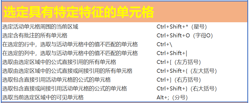 将选定区域扩展到与活动单元格在同一列或同一行的最后一个非空单元格 End+Shift+箭头键