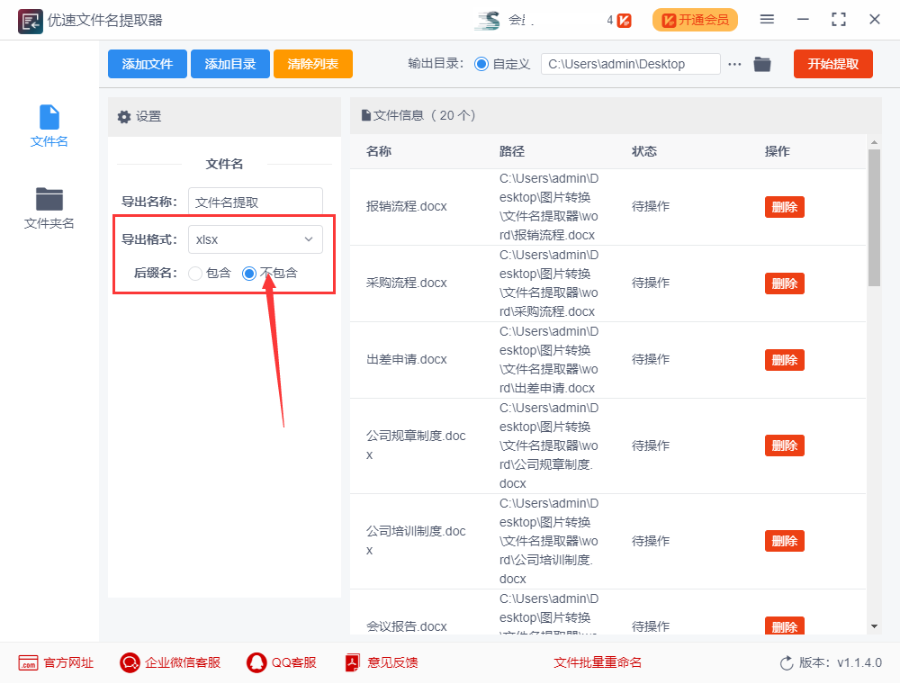 需要使用的工具:优速文件名提取器