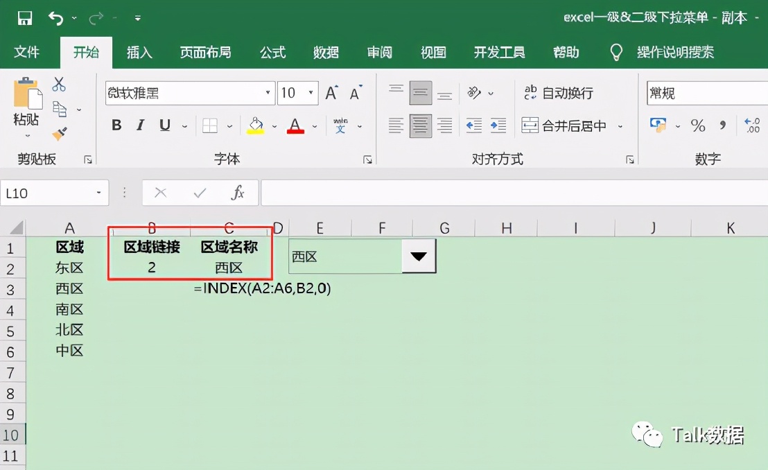 但是当你选择一个项的时候,区域链接只会显示数字,所以我加了一个辅助列(区域名称)利用公式将区域名称提取过来。如下方: