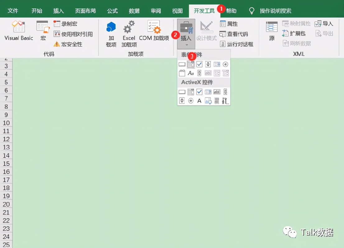 按照1→2→3点击之后再点击excel任意单元格就会出现下方的图形。鼠标指针放在白点上即可调整控件的大小。