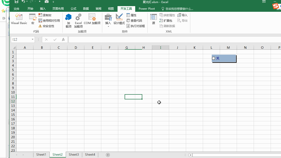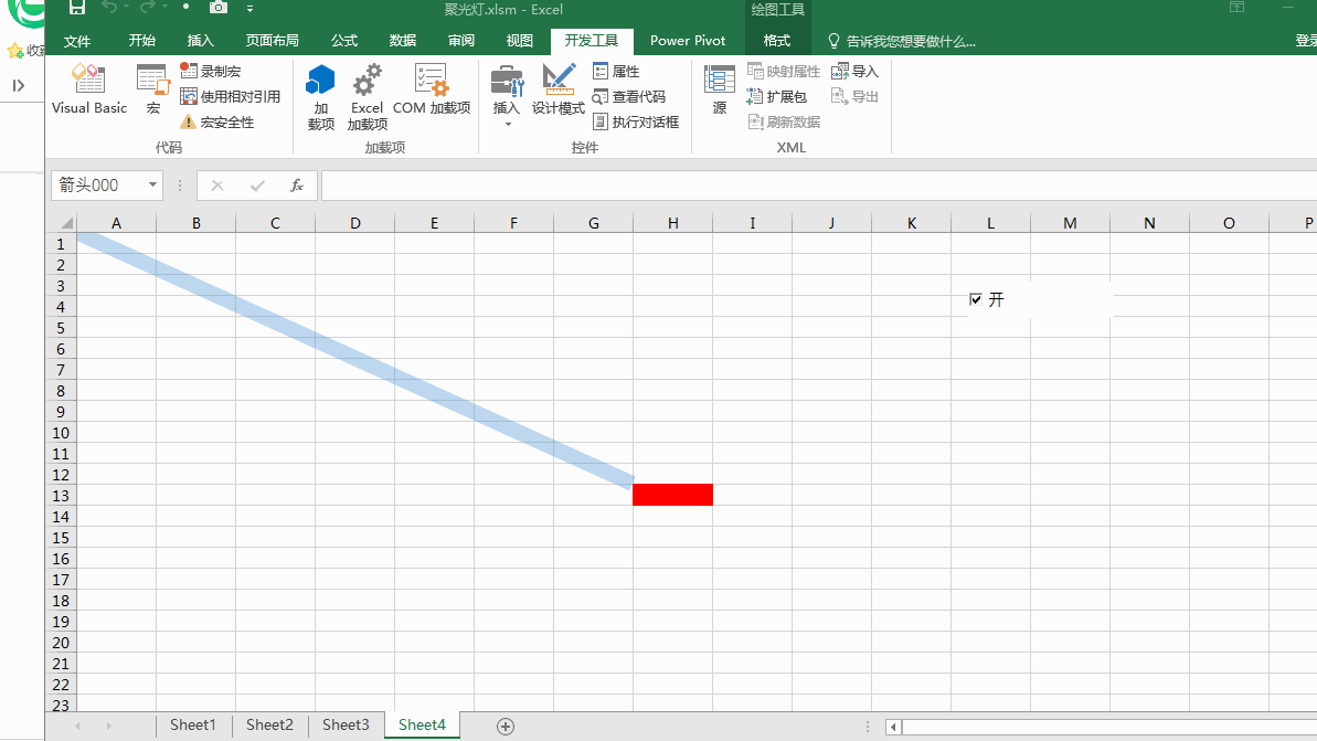 Private Sub Worksheet_SelectionChange(ByVal target As Range) If CheckBox1.Caption = "开" Then Call 聚光灯(target) End Sub Sub 聚光灯(rg As Range) If Application.CutCopyMode = False Then With rg .Parent.Cells.Interior.ColorIndex = xlNone .EntireRow.Interior.Color = vbGreen .EntireColumn.Interior.Color = vbCyan .Interior.Color = vbRed End With End If End Sub