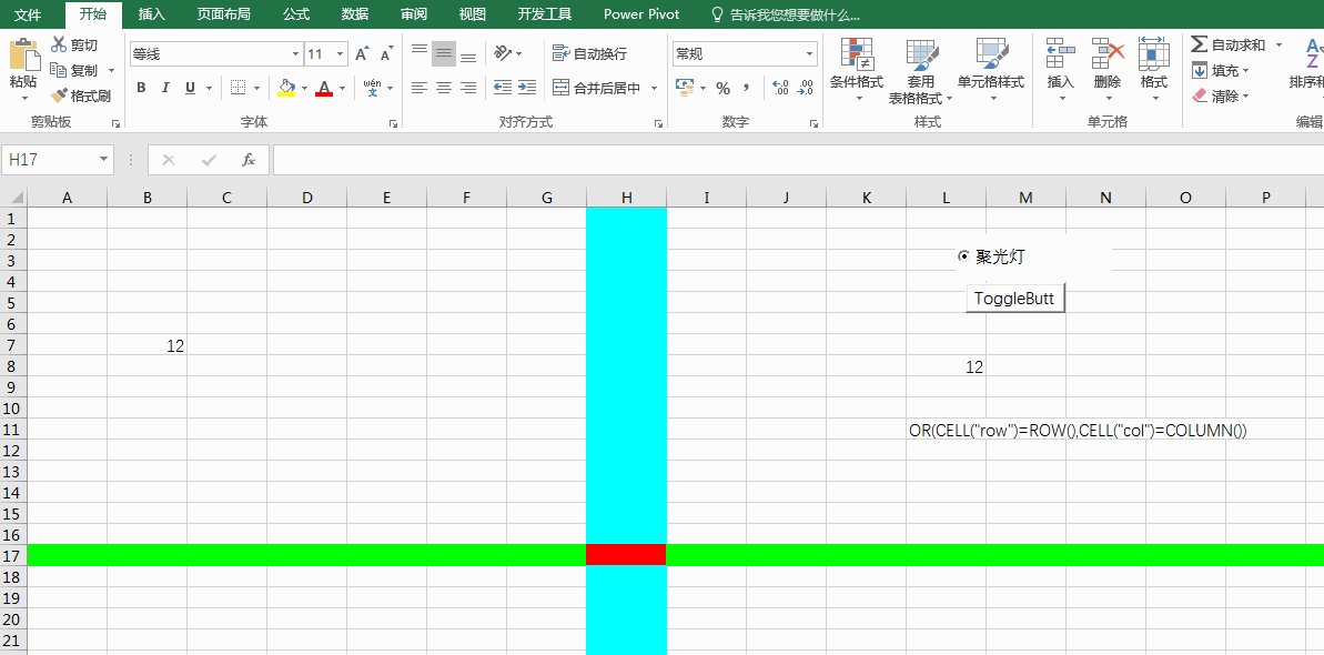 一、常见的聚光灯效果实现方法:“条件格式”+VBA代码法