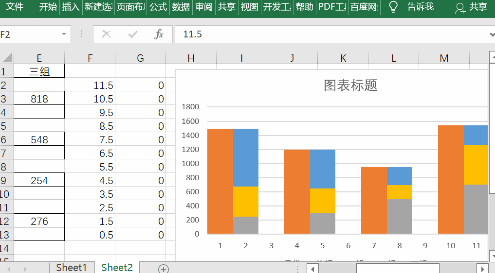 选中表格区域,点击插入——图表——插入柱形图或条形图——堆积柱形图。