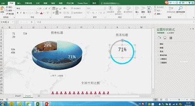 首先我们来制作这个海洋与陆地的百分比图,整体来说很简单,只需要插入3维饼状图,然后找到相关的配图。最后发挥CV攻城狮的终极武器,ctrl C然后ctrl V即可。