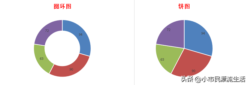 仔细观察会发现圆环图比饼图扇区更凸显比较效果。