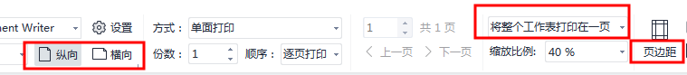 1、打印时如何把整个工作表打印在一页、修改页边距、横纵向打印?