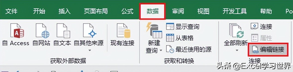 1. 选择菜单栏的“数据”-->“编辑链接”