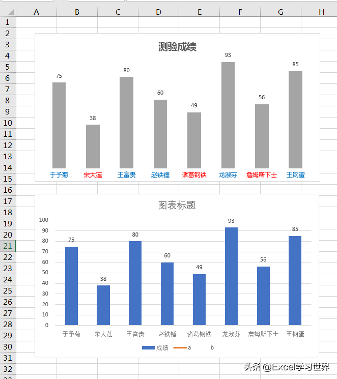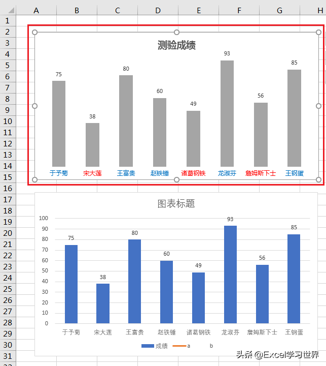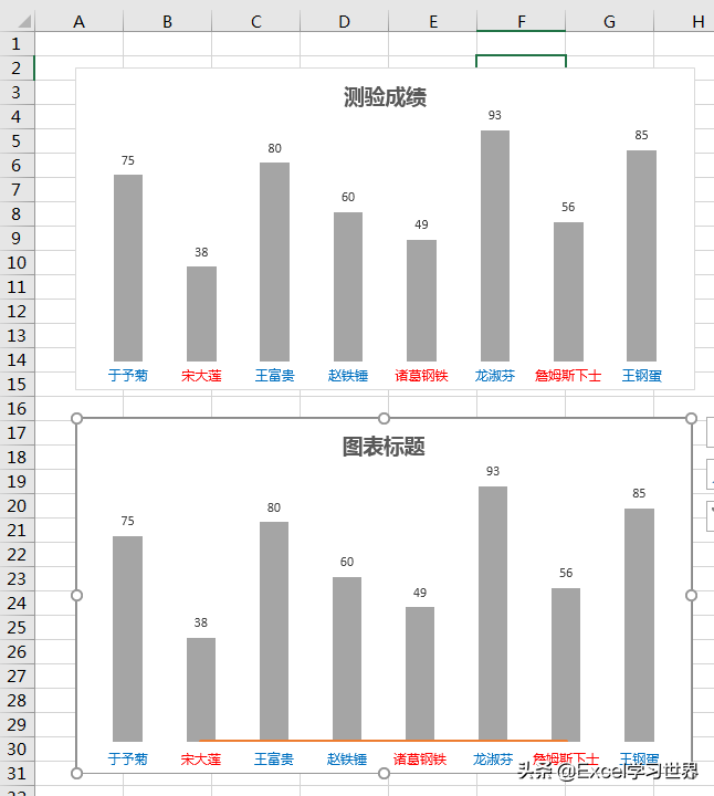 将下图中上方一个图表的样式完全复制给下面一个图表。