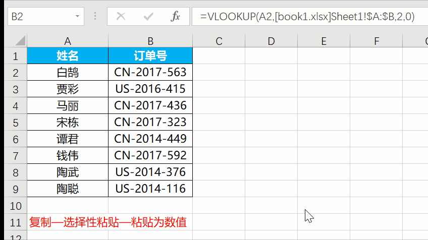 上图中,B列引用了工作簿book1的内容,如果这样的数据发给同事,那么同事打开这张表的时候一定也会出现上上图的提示。选中公式列,按Ctrl+C复制,然后右键单元格,选择【选择性粘贴】—【粘贴为数字】即可。