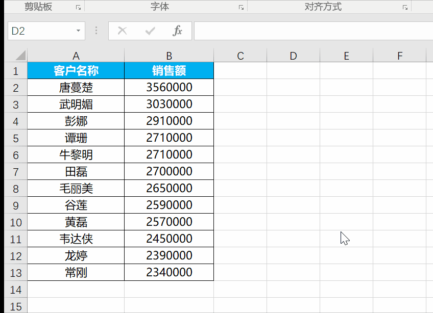 工作中往往存在需要我们对某一列或一行数据进行加减乘除处理,如下图中,B列的销售额数值过大,需要换算成以万为单位,即数值除以10000,具体应该怎么做呢?