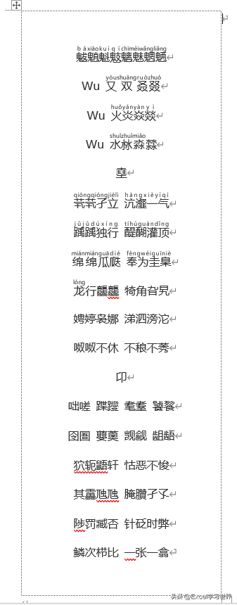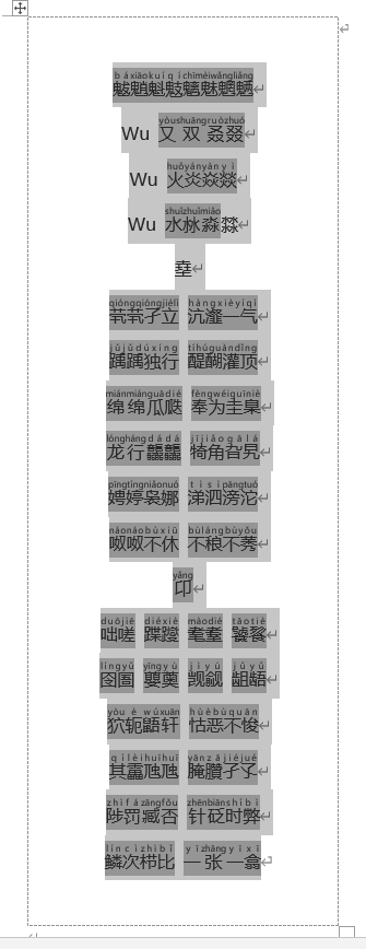 6. 选中没有出现拼音的文本,重复上述步骤,直至整篇文字都标注完毕。除了 Word 不认识的字,没有办法。