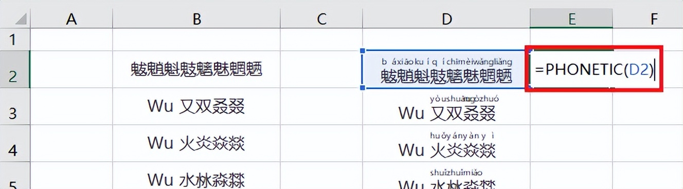 - PHONETIC 函数的作用就是提取文本字符串中的拼音字符。