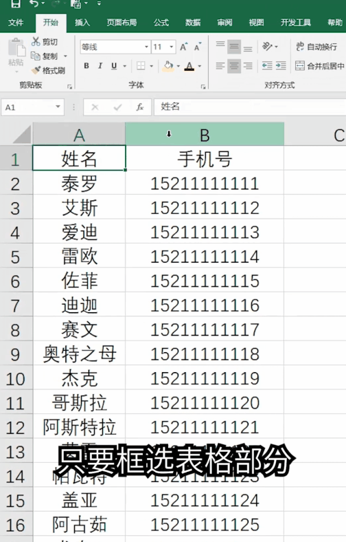 ❶ 框选手机号所在区域,按【Ctrl+1】调出单元格格式;