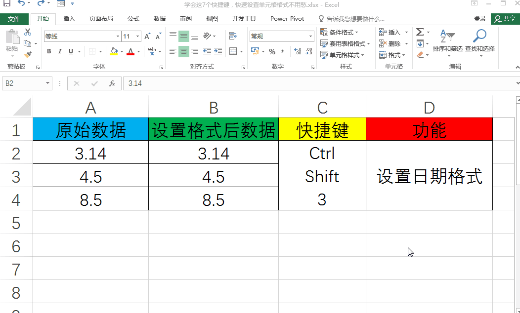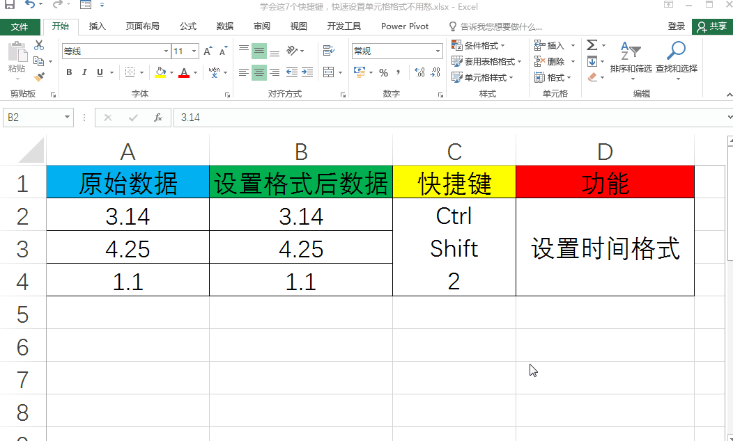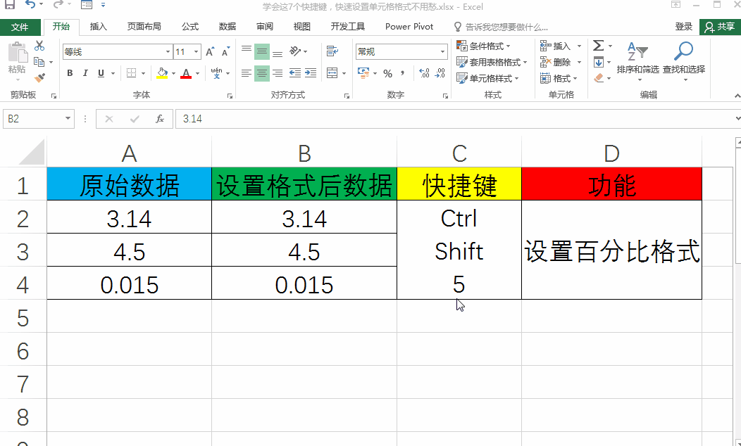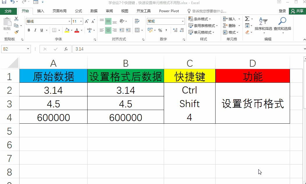 2.上述快捷键与普通设置单元格格式一样,并没有修改单元格的实际内容只是改变了单元格内容的显示方式。