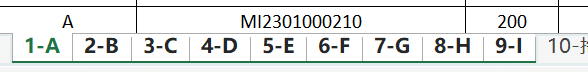 Step1:左键点击工作表名称“1-A"来选定工作表1-A,按下shift后到需要的工作表后点击工作名称,本例到9-I,所有选中的工作表都变白了,这样就完成了多选工作表。