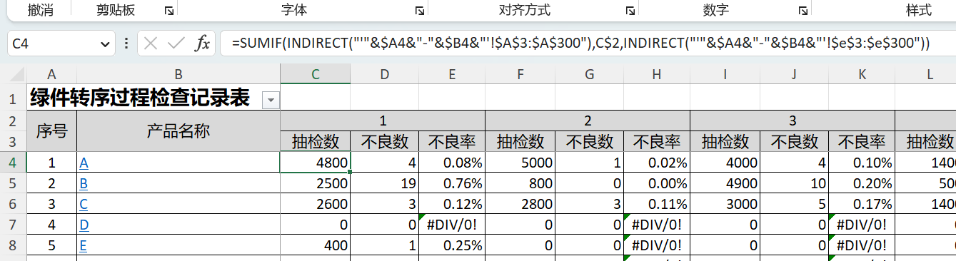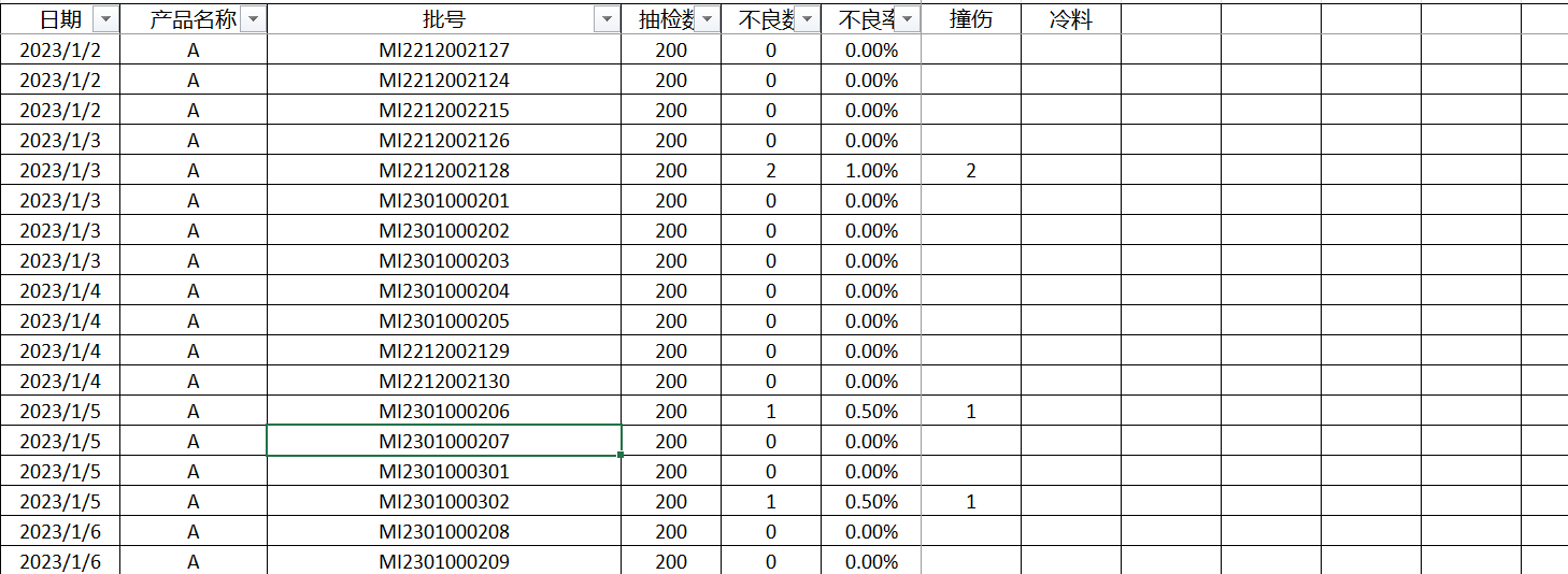 近期遇到这个事例,需要每周统计各种产品过程检验的不良率,作为周报的输入。文件的第1个工作表是各个产品的按周统计的汇总,其表格则是每天的具体检验结果的输入。文员每天花了大量的时间用进行手工的录入,且统计的准确度不高。