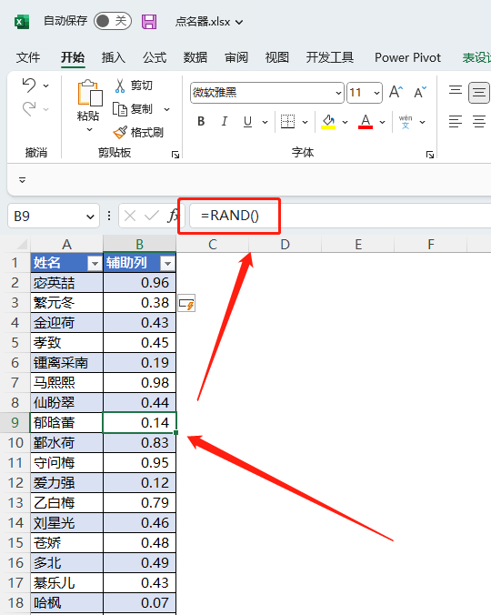 第一步:准备所有学生名单,并添加辅助列,辅助列就用rand()函数生成0-1之间的随机数