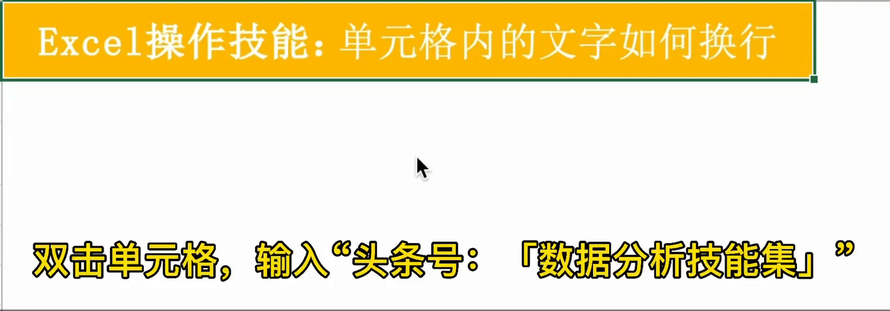 在表格中输入“头条号:「数据分析技能集」”,需要将「数据分析技能集」换行显示。