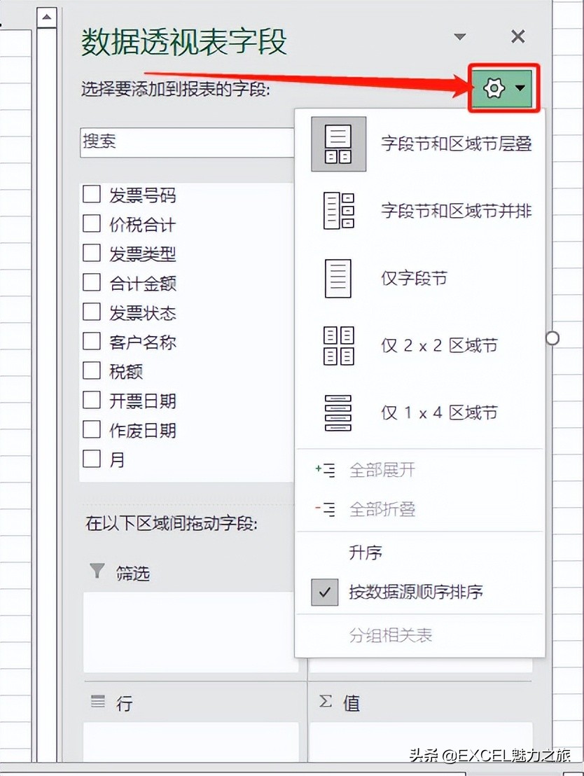 字段区的布局可以根据自己的喜好调节,一般我们使用默认的即可。截图二。