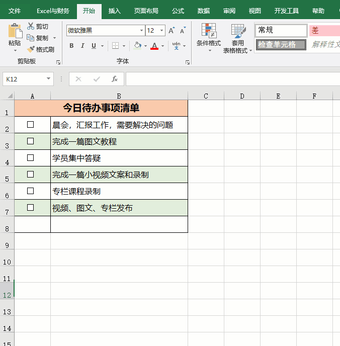 可能没有APP来的更方便,但我们重点要学习勾选框的制作和条件格式的设置,更好的利用到日常工作中,把我们的表格制作的美美哒!