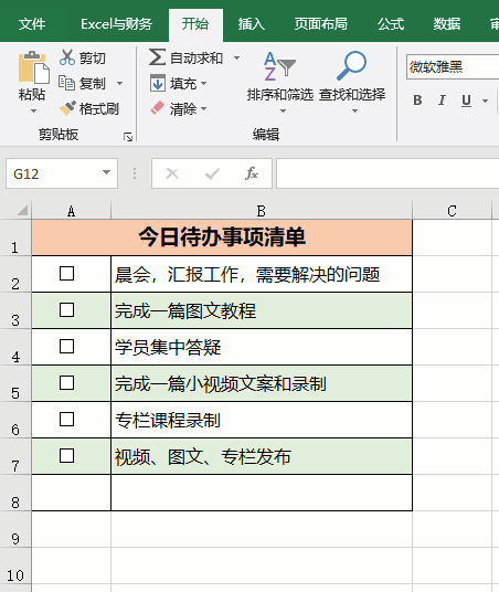 今天阿钟老师要讲的是利用Excel制作待办事项清单,每完成一项工作,勾选后自动添加删除线,表示该项工作已完成。