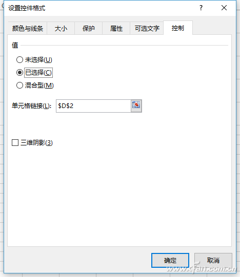 右击A2的复选框选择“设置控件格式”,值设置为“已选择”(表示复选框选中时它的值就为True),点击单元格的链接选择“$D$2”,即将复选框的选择和D列对应单元格的值对应起来。操作同上依次对A3:A5单元格的控件做同样的设置(图3)。