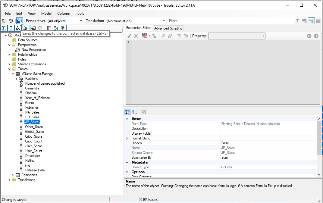添加所有字段之后,请确保同时保存在表格编辑器和Power BI中。