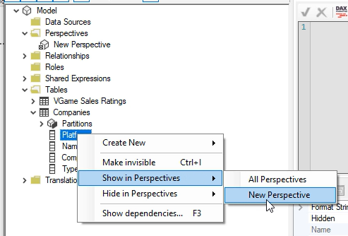 然后,您需要右键单击Perspectives文件夹以创建一个新的透视图: